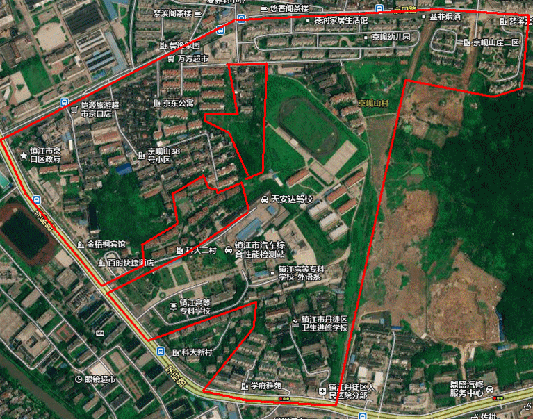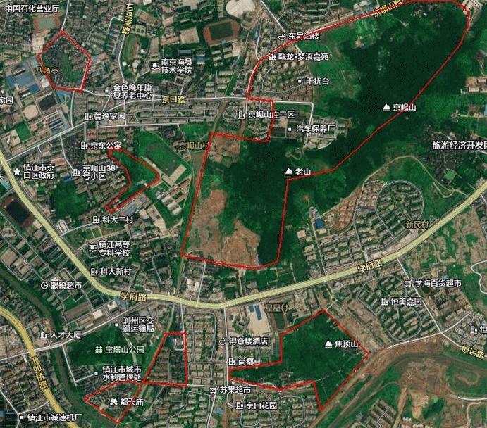 正东路街道京岘山社区北至京口路,西南邻学府路,东至京岘山,总面积约为2平方公里。
