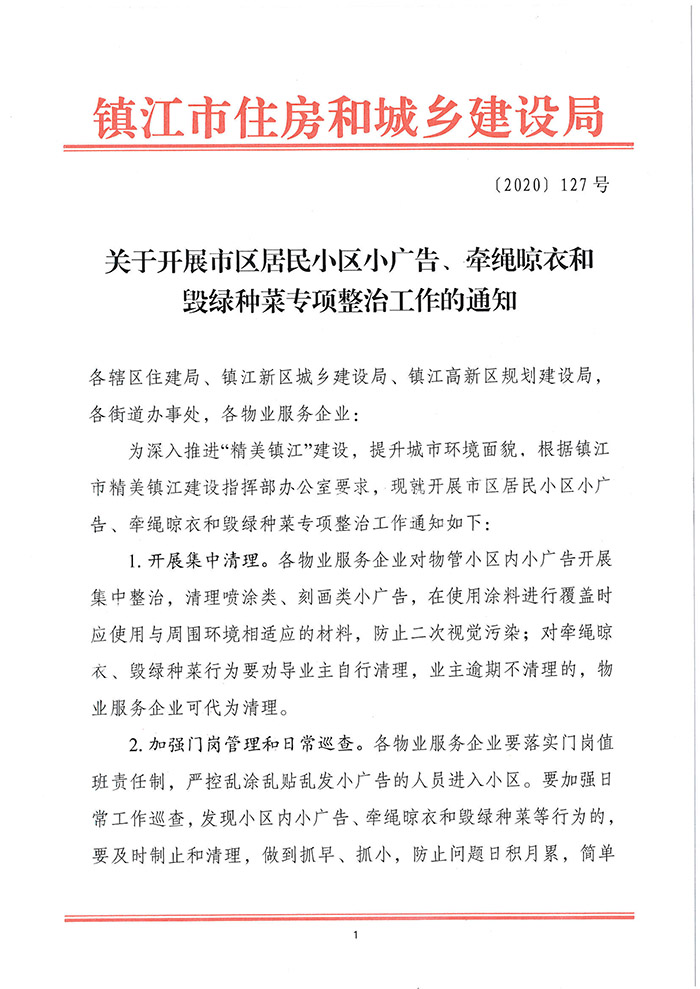 关于开展市区居民小区小广告、牵绳晾衣和毁绿种菜专项整治工作的通知