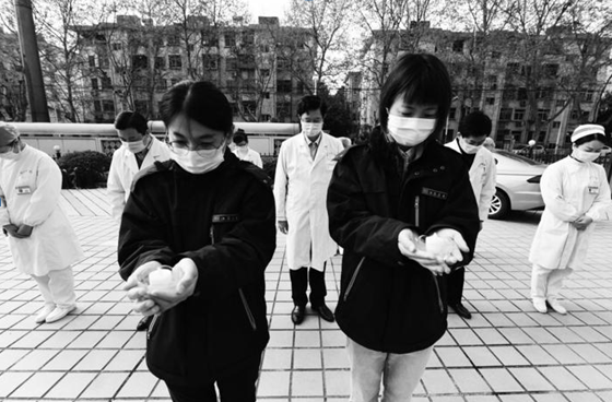 4日,市中医院组织援鄂医疗队队员和医务人员举行默哀仪式,表达对抗击新冠肺炎疫情斗争牺牲烈士和逝世同胞的深切哀悼。王呈 徐强 摄影报道